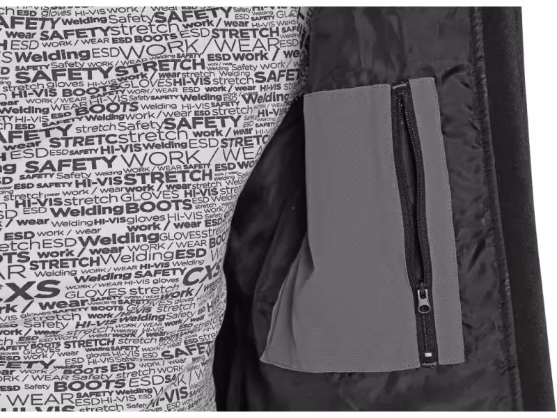 kieszenie na piersi zapinane na zatrzaski i zamek błyskawiczny,