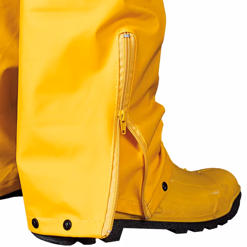 spodnie: zapinane na napę; wykończone w pasie rozciągliwą gumką; otwory na kieszenie boczne; nogawki zakończone zapięciem na suwak oraz na napy umożliwiające regulację ich szerokości