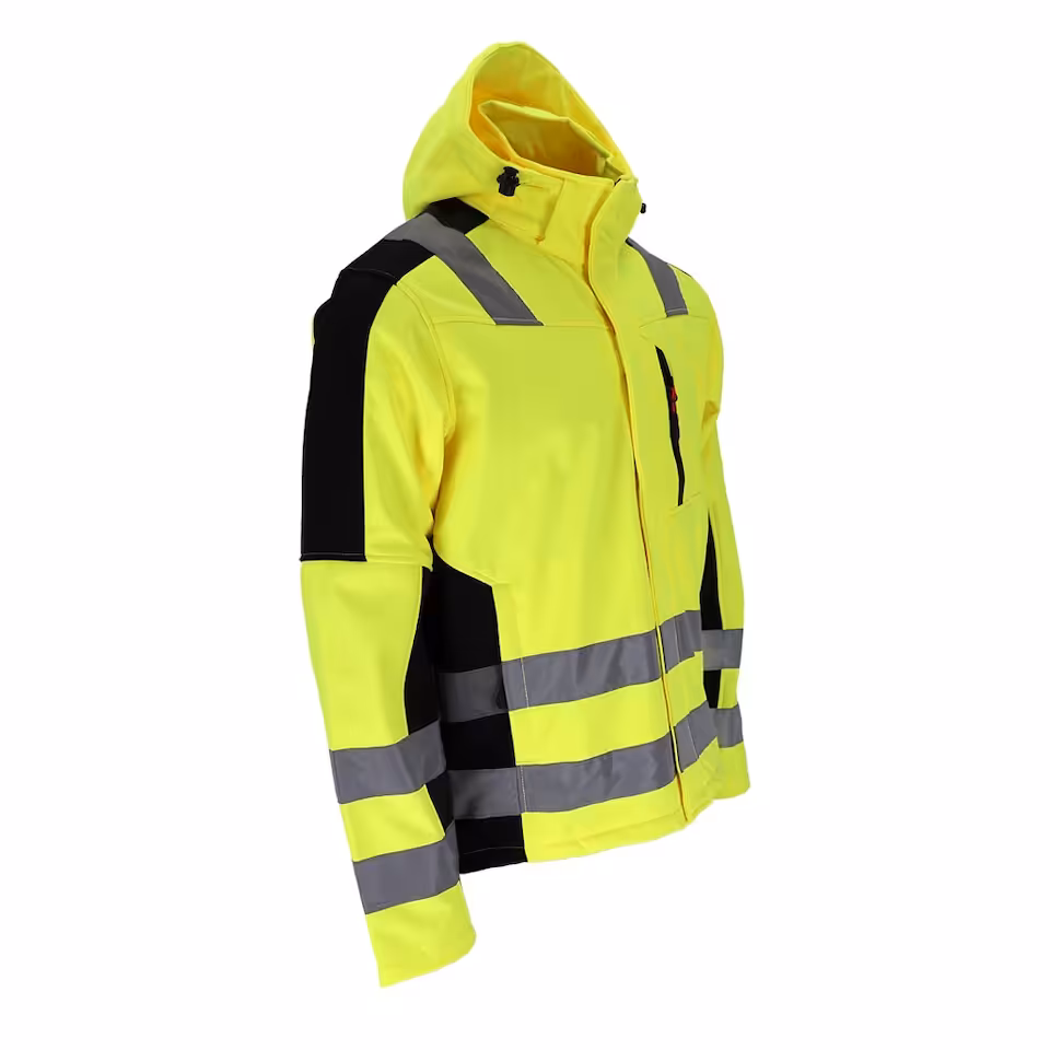 tkanina we fluorescencyjnym kolorze i pasy odblaskowe zwiększające widoczność