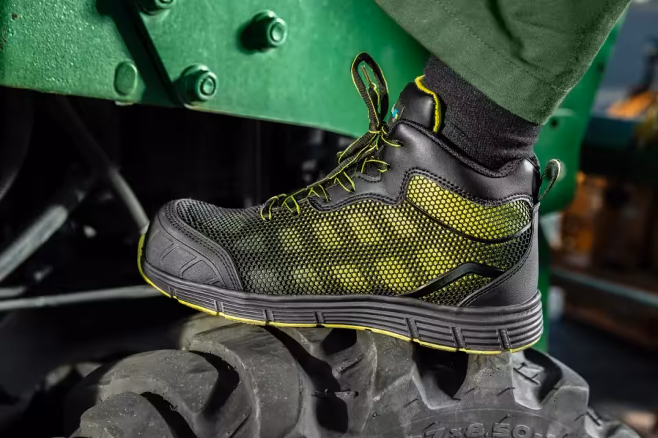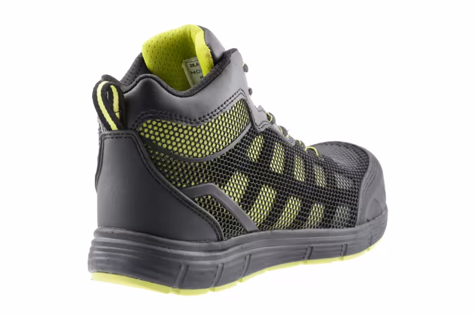 Męskie trzewiki ochronne DOSSE sięgające do kostki. Przeznaczone do ochrony stóp przed czynnikami zewnętrznymi. Zgodne z klasą bezpieczeństwa S1P według normy ISO 20345:2011. Wykonane z wysokiej jakości materiału KPU, idealnie łączą modny, stylowy wzór butów sportowych wraz z zaletami obuwia ochronnego. Buty wyposażono w kompozytowy podnosek oraz wkładkę przebiciową Kevlar w podeszwie, która umożliwia pracę na podłożu z ostrymi wystającymi przedmiotami. Dzięki antypoślizgowej podeszwie trzewiki doskonale sprawdzą się podczas chodzenia po nierównych i śliskich podłożach. Buty polecane w branży logistycznej, transportowej, w przemyśle samochodowym, w pracach remontowych oraz budowlanych.
